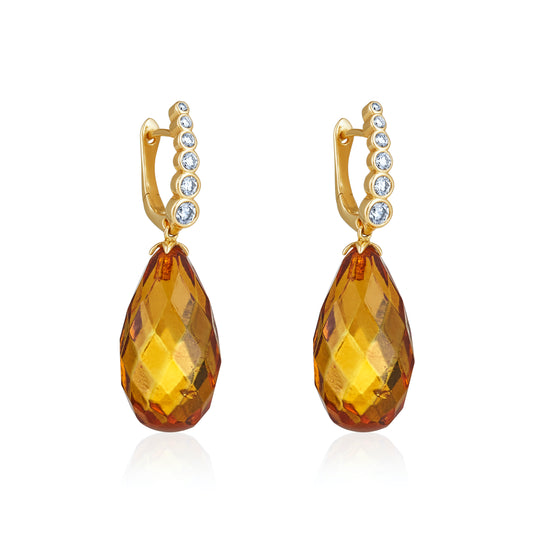 Magic Wish 18ct Yellow Gold, Diamond & Amber Short Drop Earrings