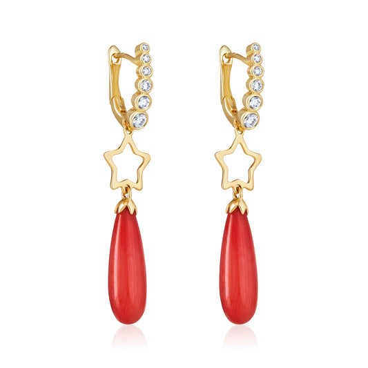 Magic Wish 18ct Yellow Gold, Diamond & Coral Short Drop Earrings with Open Star