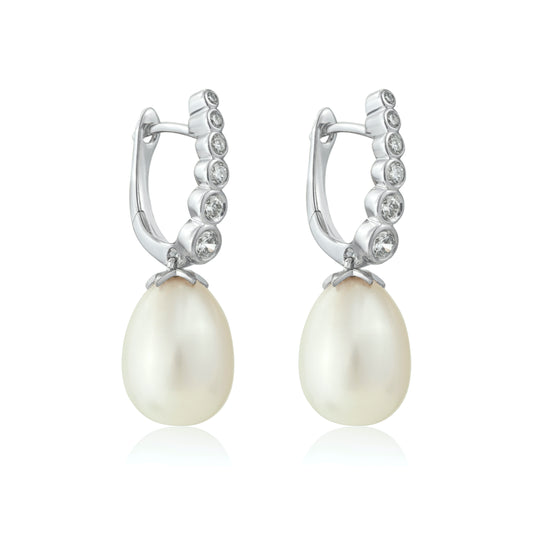 Magic Wish 18ct White Gold, Diamond & Pearl Short Drop Earrings