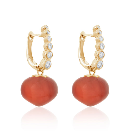 Magic Wish 18ct Yellow Gold, Diamond & Carnelian Short Drop Earrings