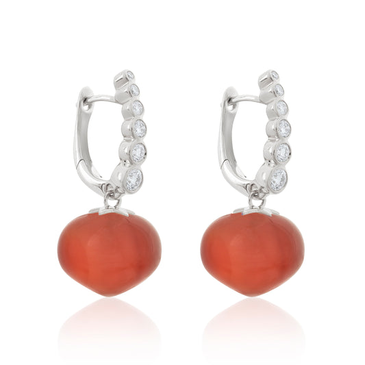 Magic Wish 18ct White Gold, Diamond & Carnelian Short Drop Earrings