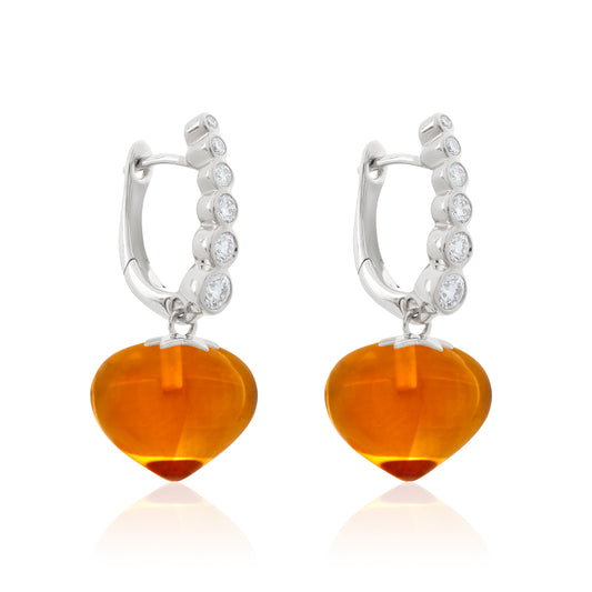 Magic Wish 18ct White Gold, Diamond & Madeira Citrine Short Drop Earrings
