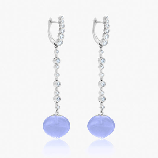 Magic Wish 18ct White Gold, Diamond & Blue Chalcedony Long Drop Earrings
