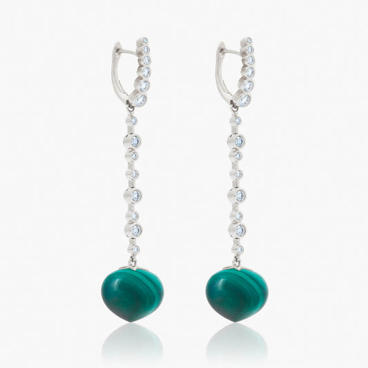Magic Wish 18ct White Gold, Diamond & Malachite Long Drop Earrings