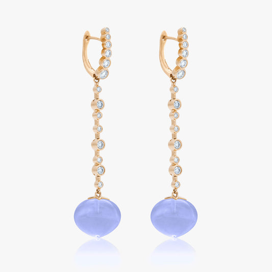 Magic Wish 18ct Yellow Gold, Diamond & Blue Chalcedony Long Drop Earrings