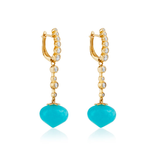 Magic Wish 18ct Yellow Gold, Diamond & Amazonite Medium Drop Earrings