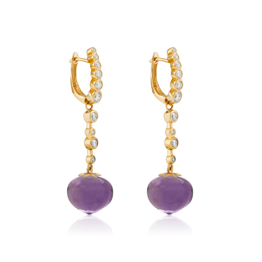 Magic Wish 18ct Yellow Gold, Diamond & Amethyst Medium Drop Earrings