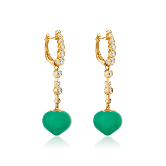 Magic Wish 18ct Yellow Gold, Diamond & Chrysoprase Medium Drop Earrings