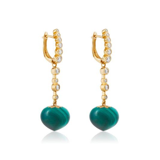 Magic Wish 18ct Yellow Gold, Diamond & Malachite Medium Drop Earrings