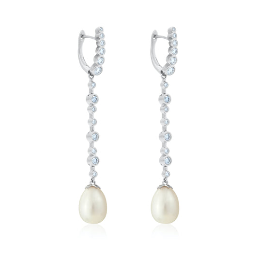 Magic Wish 18ct White Gold, Diamond & Pearl Long Drop Earrings