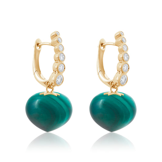 Magic Wish 18ct Yellow Gold, Diamond & Malachite Short Drop Earrings