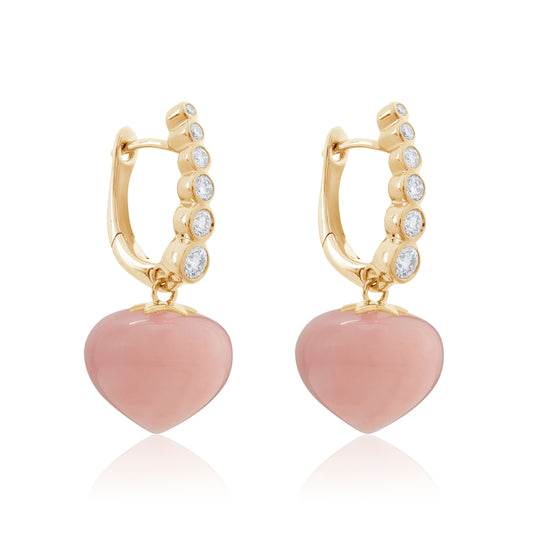 Magic Wish 18ct Yellow Gold, Diamond & Pink Opal Short Drop Earrings