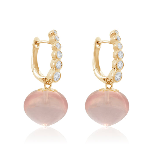 Magic Wish 18ct Yellow Gold Diamond & Rose Quartz Short Drop Earrings