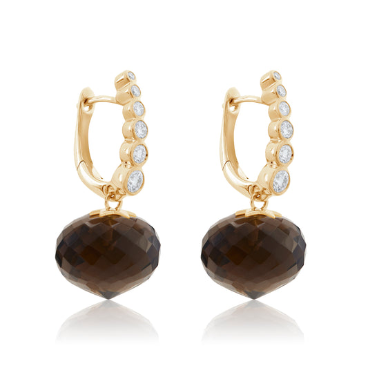 Magic Wish 18ct Yellow Gold, Diamond & Smoky Quartz Short Drop Earrings