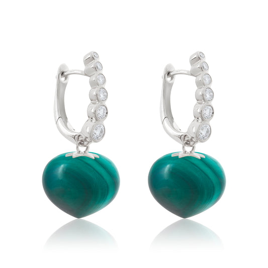 Magic Wish 18ct White Gold, Diamond & Malachite Short Drop Earrings