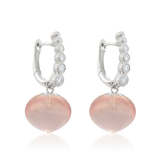 Magic Wish 18ct White Gold Diamond & Rose Quartz Short Drop Earrings