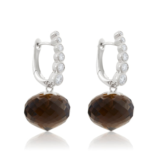 Magic Wish 18ct White Gold, Diamond & Smoky Quartz Short Drop Earrings