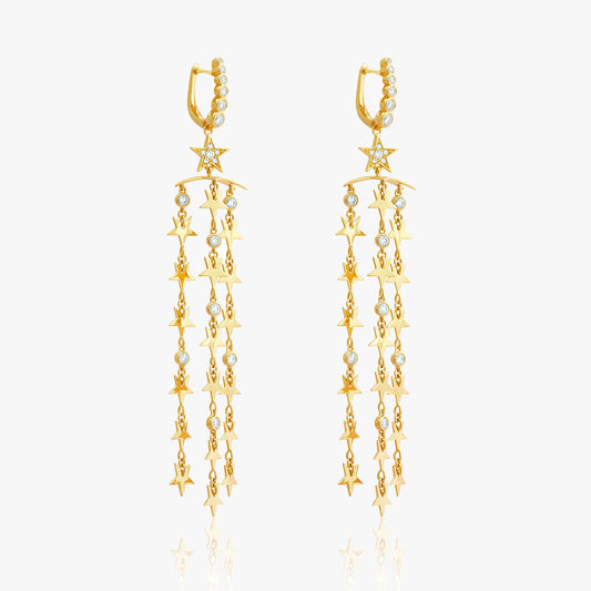 Guiding Star 18ct Yellow Gold Hanging Dazzling Earrings